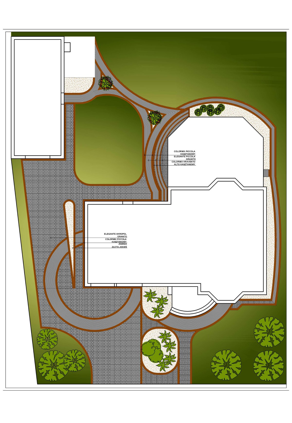 Projekt z wykorzystaniem kostki Libet linia Elegante Piccola Granito, Akropol Granito oraz z seria Colormix Piccola Kasztan.</p>