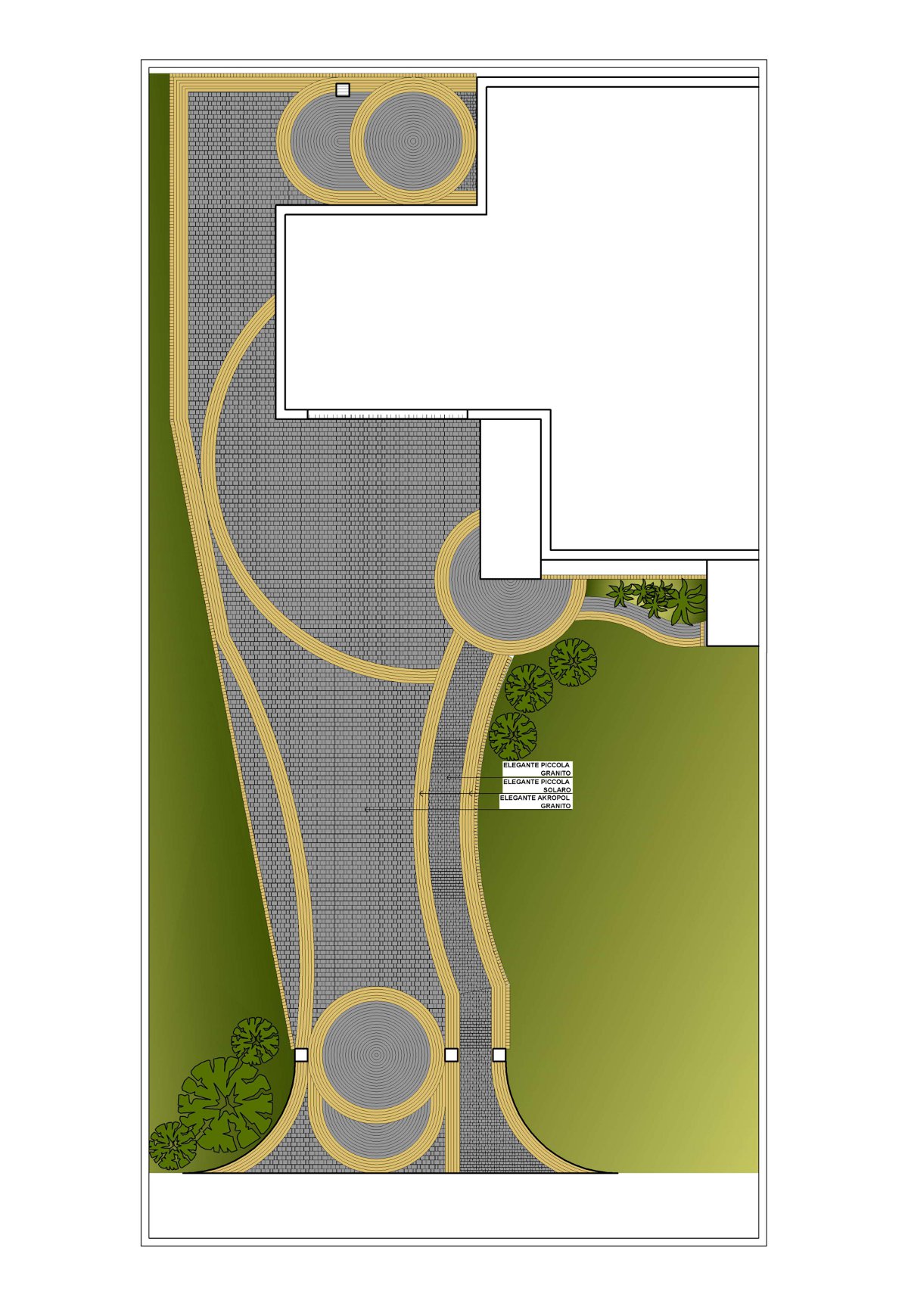 Projekt z wykorzystaniem kostki Libet linia Elegante Piccola Granito, Solaro oraz Akropolu Granito</p>